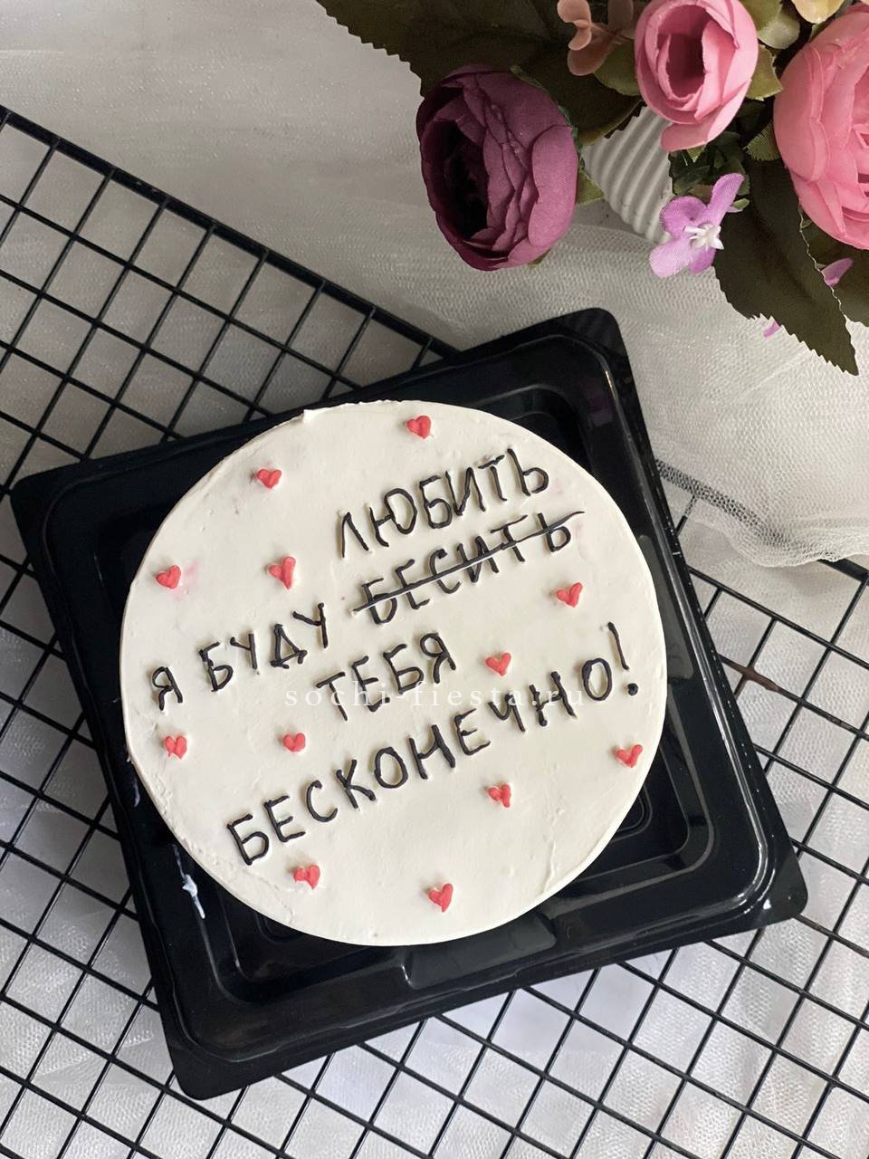 Компактный десерт ручной работы с авторским оформлением и персональной надписью. Два варианта начинки позволяют выбрать именно тот вкус, который запомнится. Яркий декор делает каждый такой торт уникальным.