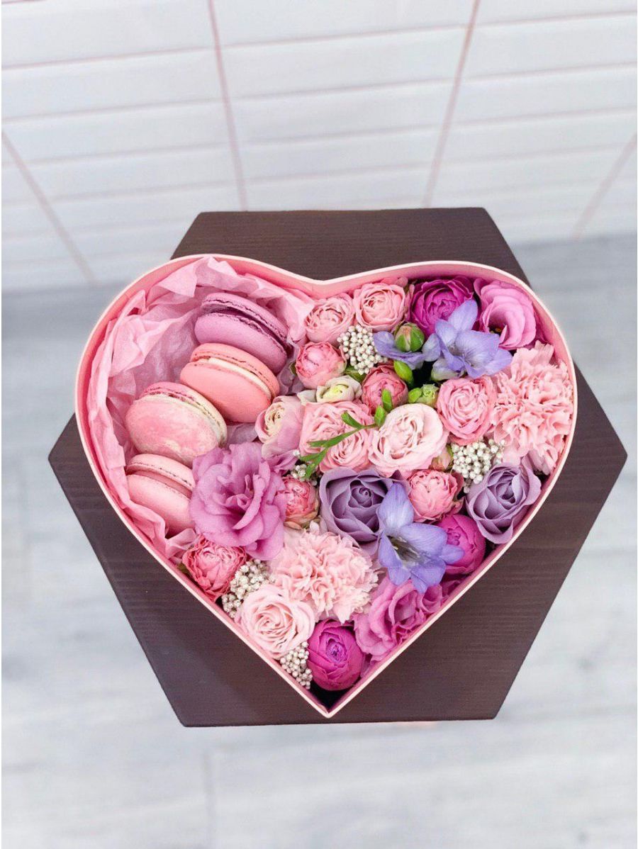 Бокс-сердце с макаронс