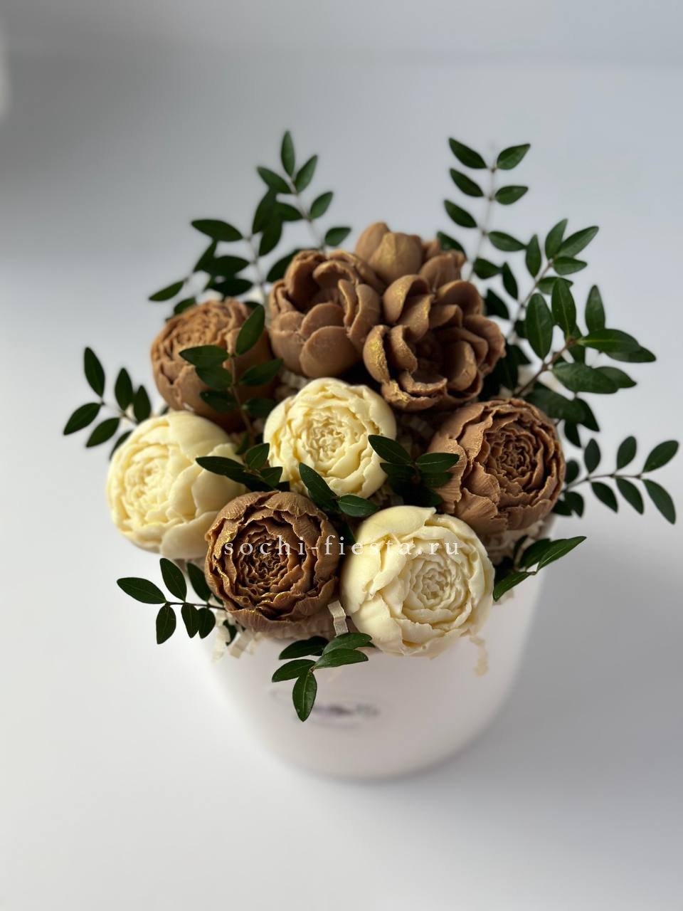 Три соцветия гортензии в кремовых оттенках дарят ощущение утреннего света и спокойствия. Мягкая палитра работает на расслабление и гармонию.