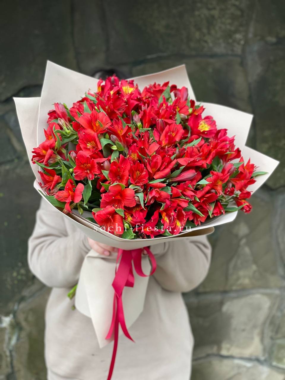 альстромерия - 51 ветка, лента, упаковка (цвет альстромерии можно согласовать).
