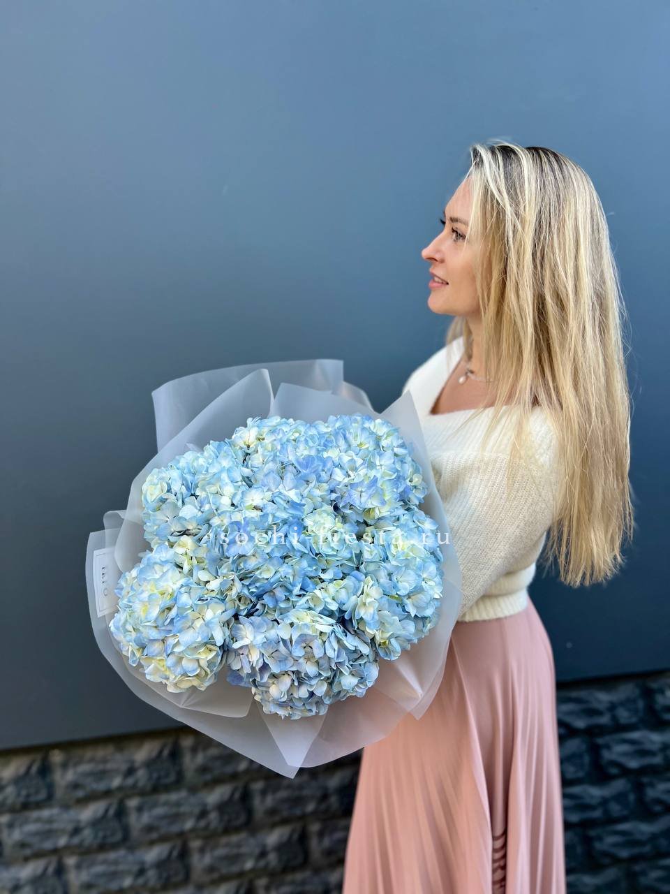 гортензия - 11 шт., лента, дизайнерская упаковка.