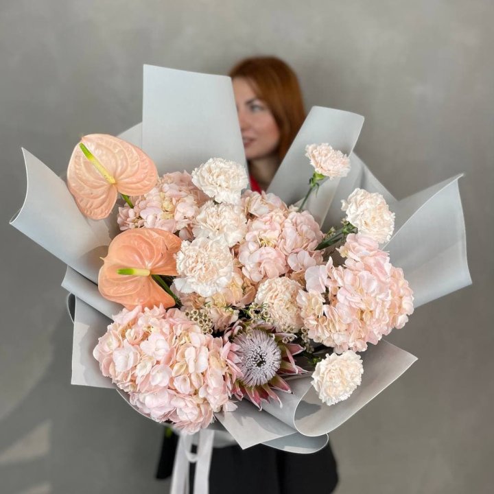 - Редкий состав — David Austin, ранункулюс, анемоны, сезонные пионы.