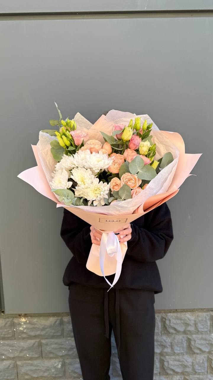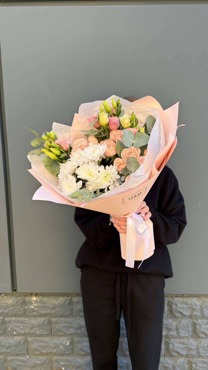 Букет в нежных светлых оттенках идеален для утонченных получательниц без повода, также для мамы и коллег!