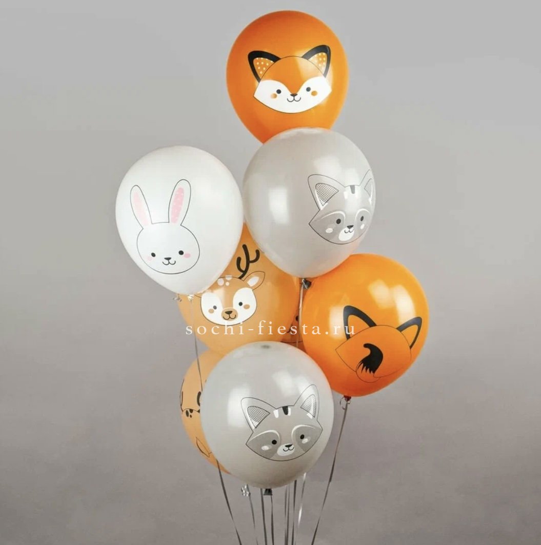 Латексный шар с рисунком лесного жителя добавит характер любому букету. На выбор зайка, лисенок, мишка, енот или олень в мягкой цветовой гамме.