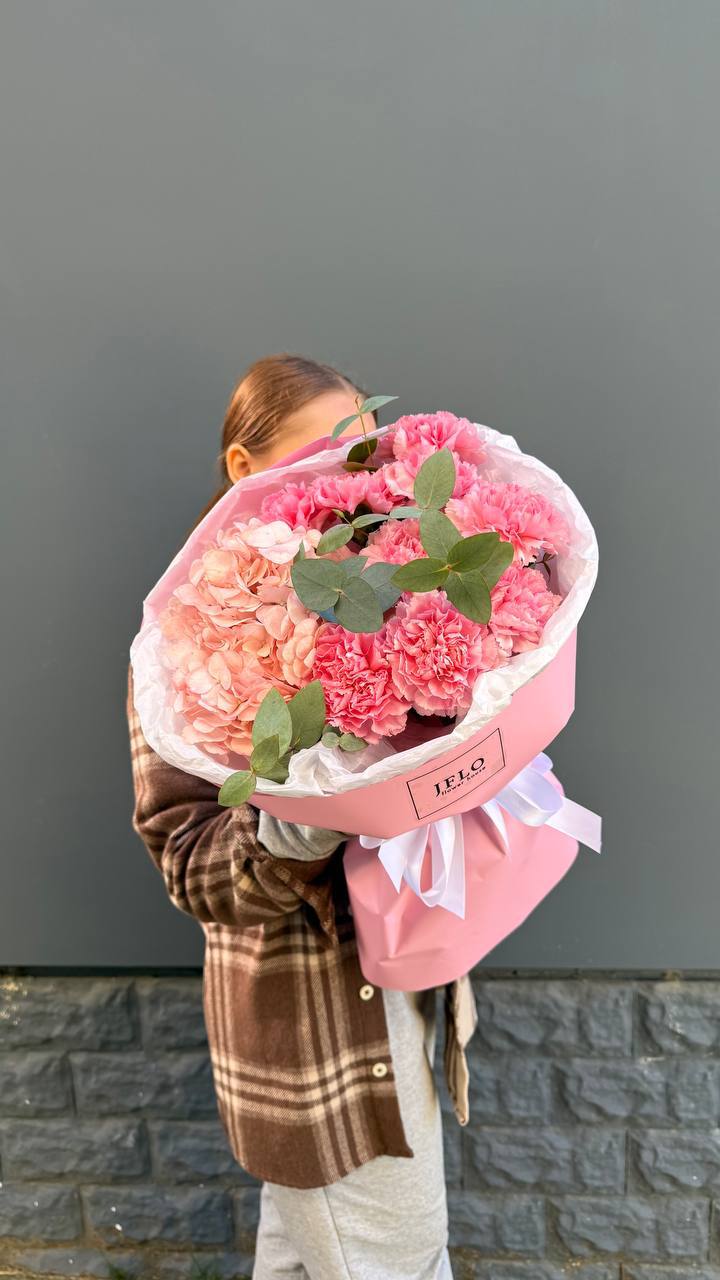 Этот авторский микс из пудровой гортензии и кружевных диантусов — идеальный подарок для тех, кто вдохновляет. Сочетание фактур и оттенков розового создает ощущение легкости и весеннего тепла. Букет, который невозможно выпустить из рук.