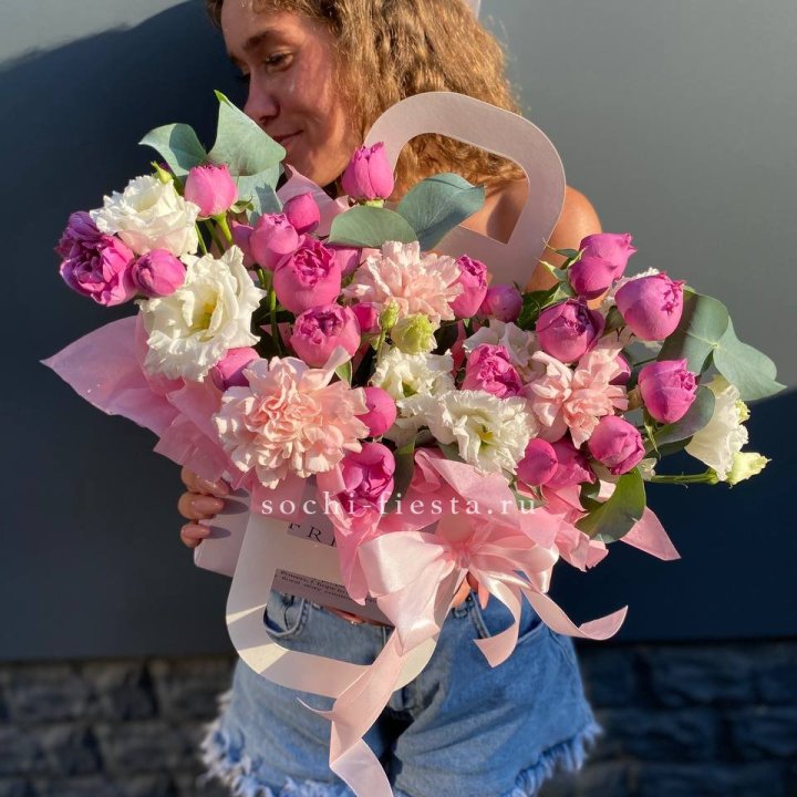 Размер выбирается по повод. Коллеге в Владикавказе — M или L. Юбилей родителей — XL. Выписка из роддома — L в пудровой палитре. Корпоративный юбилей — XXL. Романтический подарок — M или L в яркой палитре.
