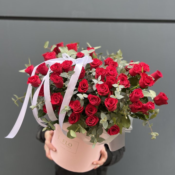 Романтические поводы — 14 февраля, годовщины, свидания. Классический вариант — красные розы в круглой коробке. Современный — пионовидные розы в крафтовой кубической упаковке.