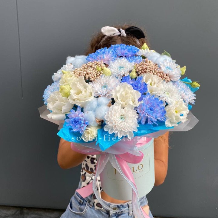 Коробка в студии Владикавказе — плотный картон с матовой поверхностью, иногда с тиснением логотипа. Внутри — флористическая губка (оазис), предварительно пропитанная водой. Сверху — атласная или шёлковая лента, декоративная тесьма, иногда фирменная открытка.