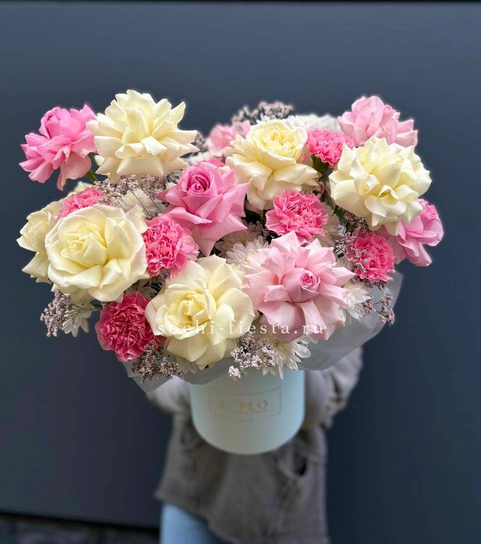 Для заказа товара "Цветочный бокс "Ловинг"" с доставкой в Владикавказе нажмите в корзину