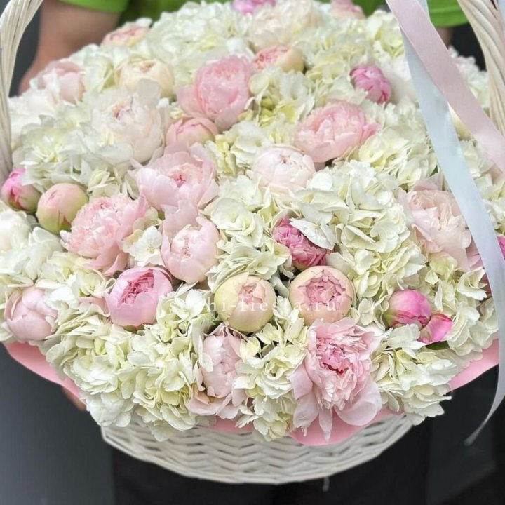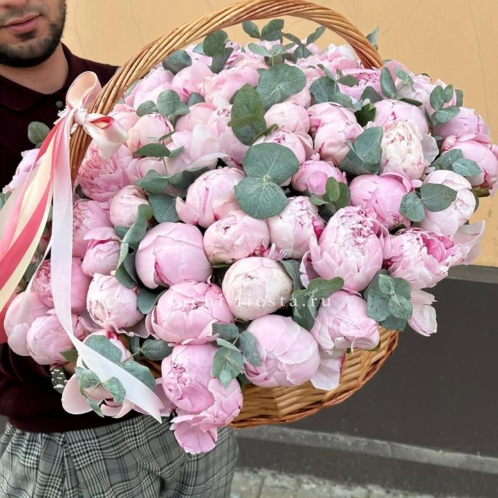 Состав корзин в Владикавказе определяется текущими поставками и сезоном. Розы Freedom, Mondial, Cappuccino — для классических куполообразных аранжировок. Пионы в мае-июне из свежих поставок: Sarah Bernhardt, Red Charm, Bowl of Cream — главный сезонный продукт. Хризантема, альстромерия, гербера — для объёмных торжественных наполнений. Эустома, ранункули — для садовых корзин. Флорист строит состав под конкретный запрос.