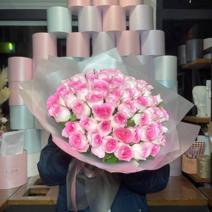 Заказ оформляется на сайте, в Телеграм-канале или по телефону. Моно-букеты 25 и 51 роза всегда в наличии. Специфические сорта, длинные стебли, пионовидные — предзаказ за 2-3 дня.