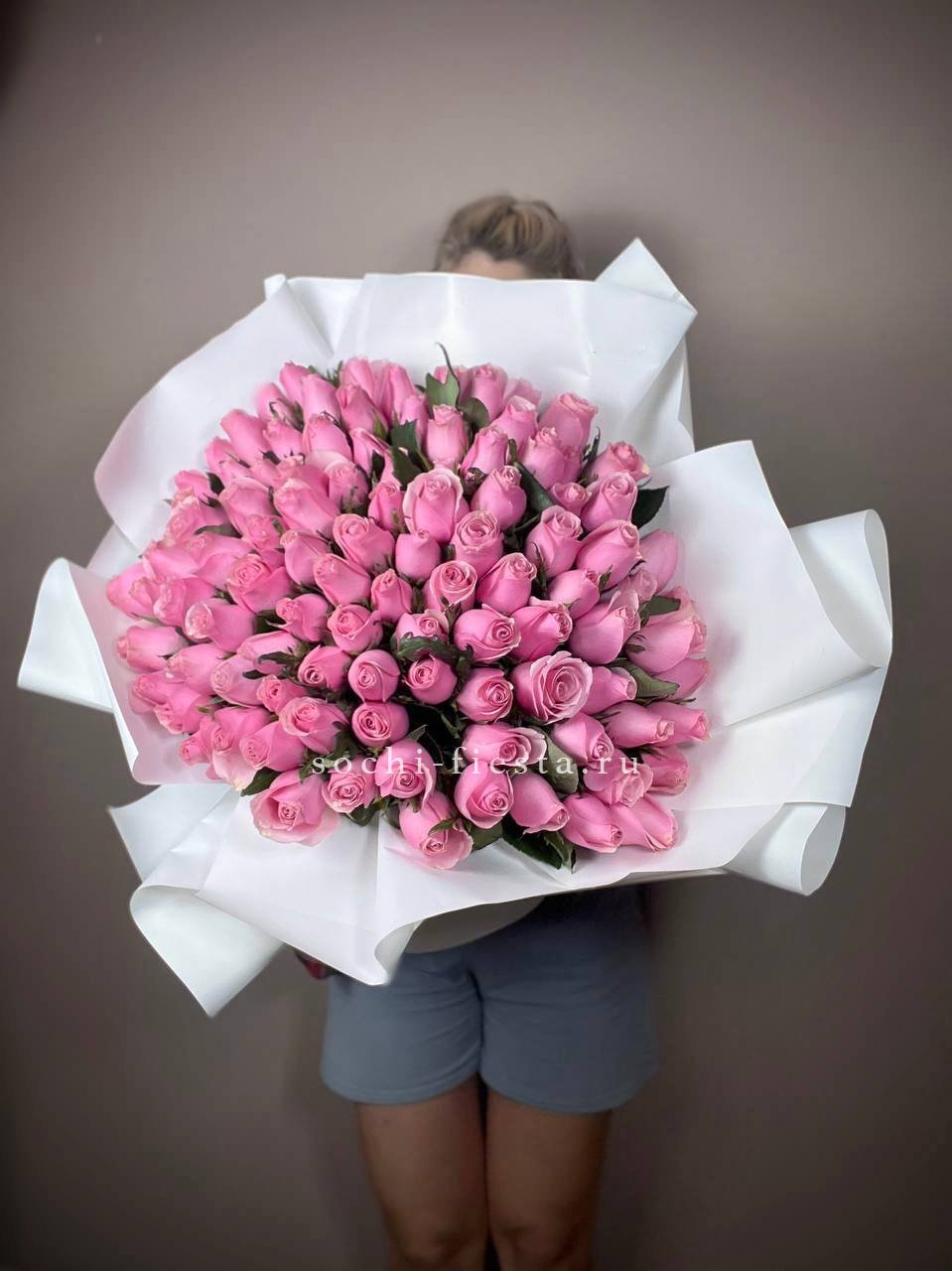 Состав букета на фотографии: 29 роз карина, крафт, лента