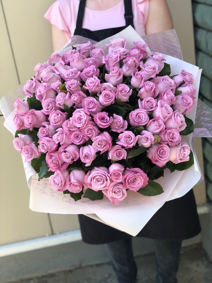 Пятьдесят одна роза собрана в плотный монохромный букет, где каждый бутон создаёт общий объём и глубину. Розовый оттенок раскрывается по-разному в зависимости от света и угла обзора. Композиция впечатляет масштабом и цельностью формы.
