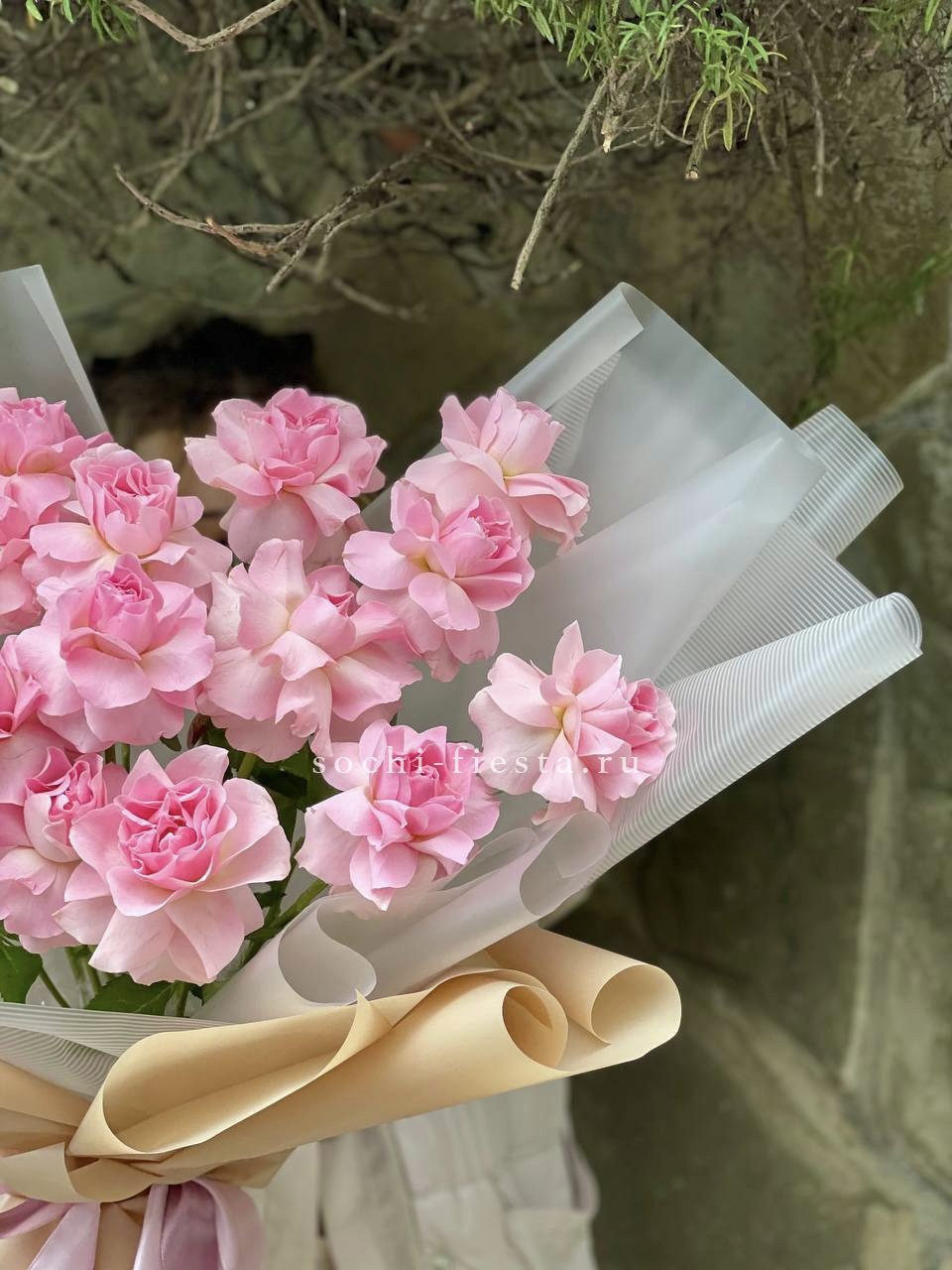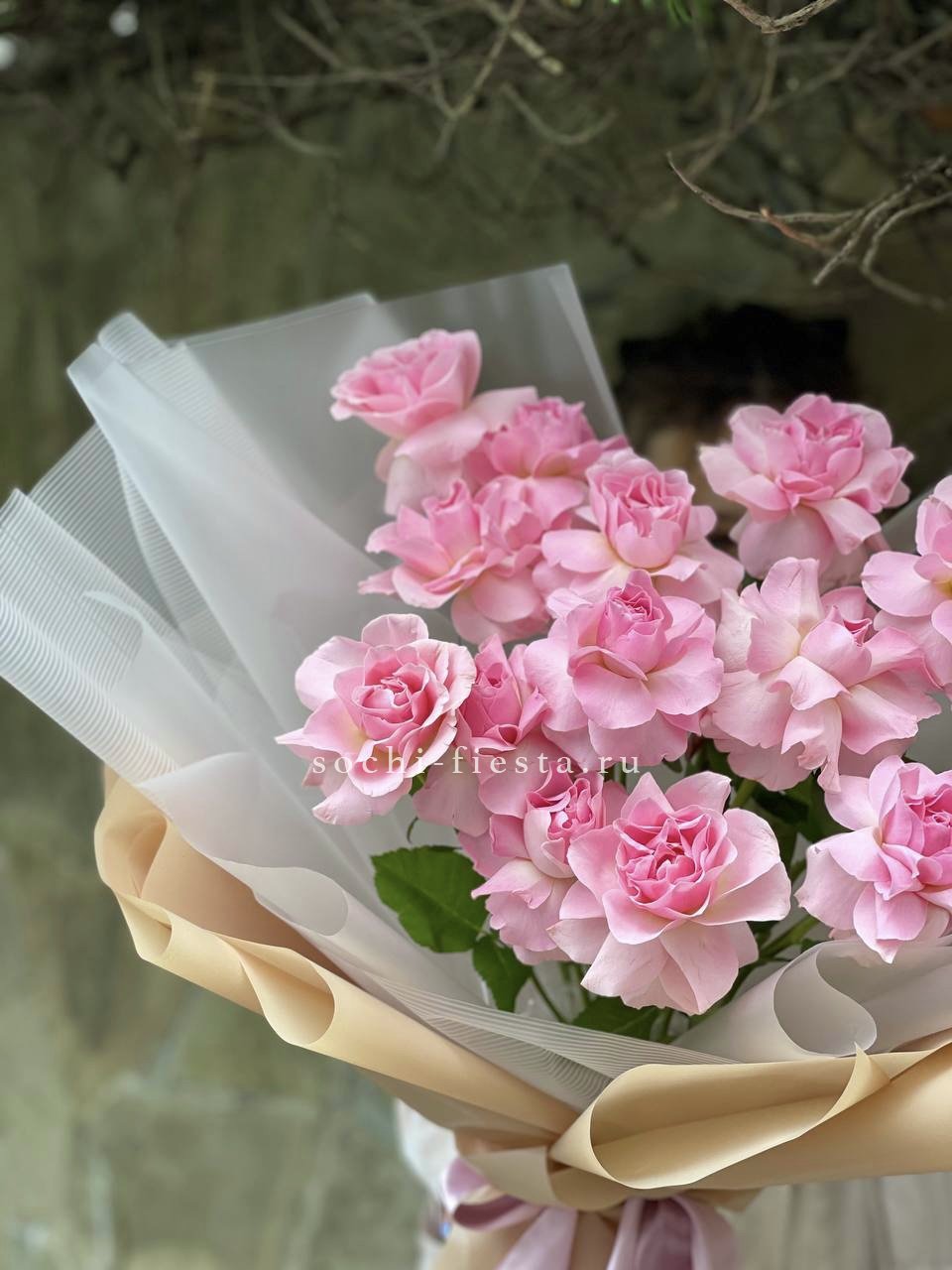 Для заказа товара "Букет из 15 французских роз Пинк дрим" с доставкой в Владикавказе нажмите в корзину