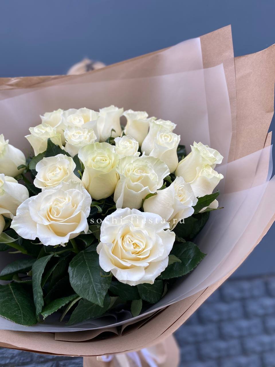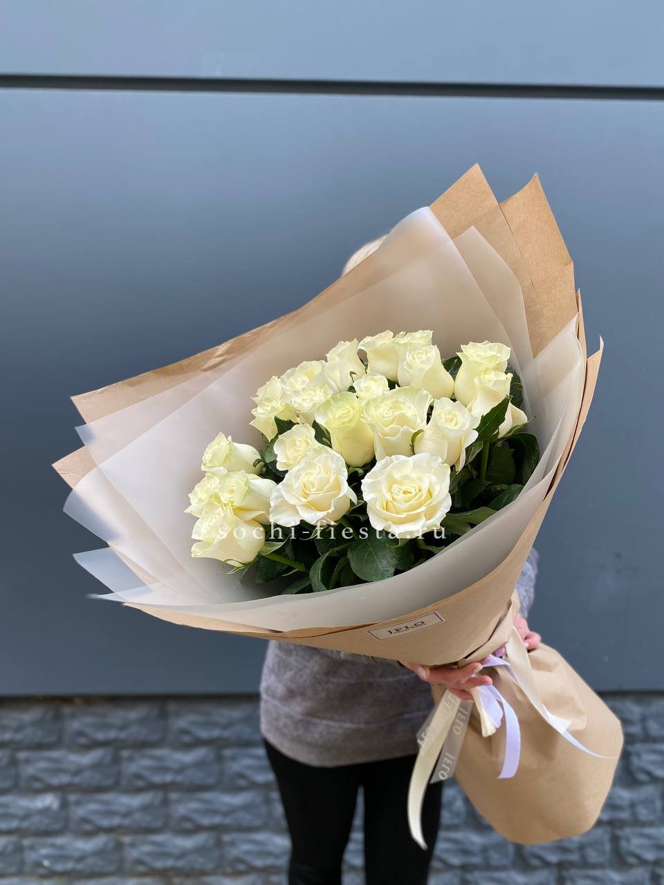 Для заказа товара " Букет высоких белых роз " с доставкой в Владикавказе нажмите в корзину