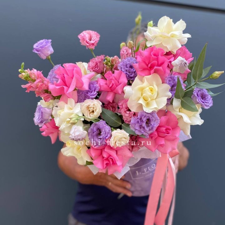 Самые популярные букеты в Владикавказе — это моно-букеты из 25 и 51 розы, шляпные коробки с гипсофилой, композиции с пионами в сезон, свадебные букеты под эскиз, авторские миксы с эвкалиптом и лавандой.