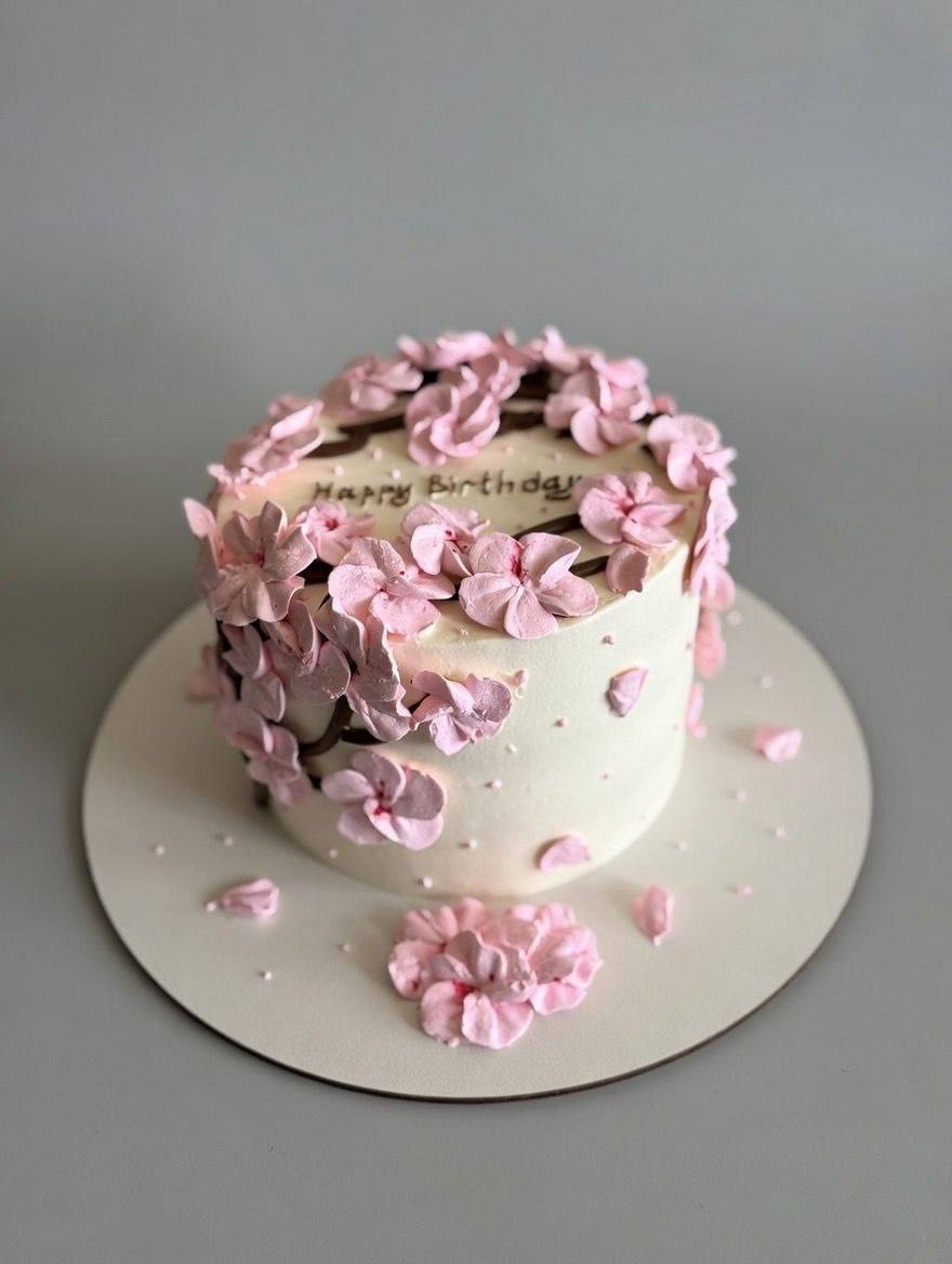 Миниатюрный торт с романтичным декором и насыщенной кремовой основой. Яркие акценты и надпись делают его центром внимания на столе. Клубничный или шоколадный вкус на выбор.