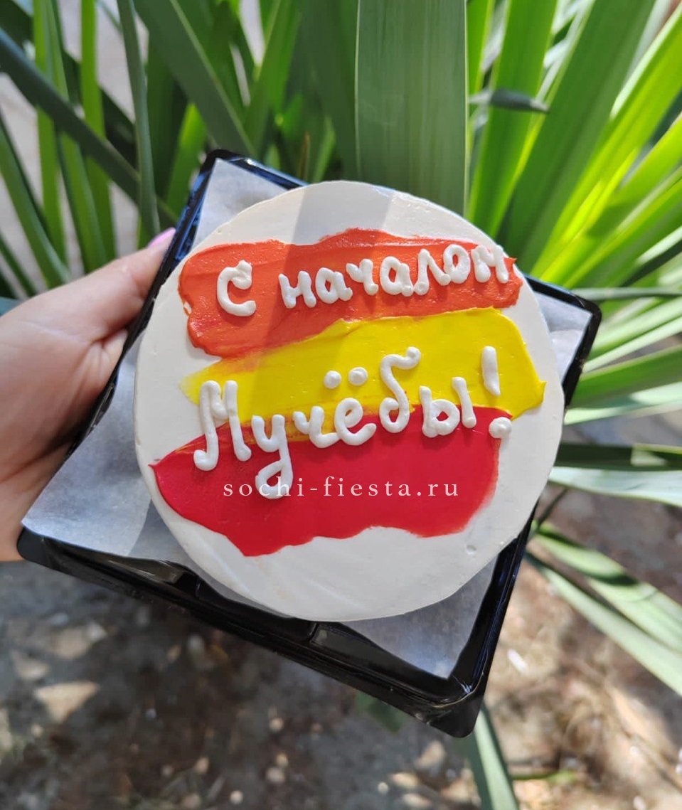 Светлая поверхность с мазками крема и декором в виде бабочек создаёт летнее настроение. Торт сочетает воздушность формы и плотность начинки на выбор из трёх вкусов.